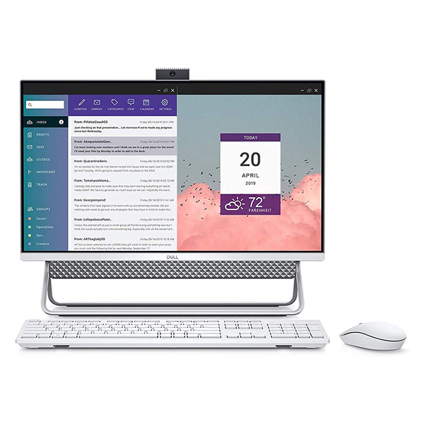 Dell Inspiron 5490 AIO có vẻ ngoài thanh lịch và lộng lẫy. Với kiểu dáng đứng, thiết kế tổng thể của sản phẩm này rất thời trang và bắt mắt. Nó chiếm rất ít không gian trên bàn. Thiết kế và cấu trúc của sản phẩm là loại rất cao cấp và thiết lập AIO này đi kèm với màn hình cảm ứng Infinity 24 inch viền hẹp chống chói đẹp mắt làm màn hình chính. Bên dưới bảng hiển thị, thanh âm thanh hiện diện ở đó, nơi đặt hai loa nhỏ. Máy tính có trọng lượng khoảng 5 Kg và kích thước là 21 x 106 x 12,6 inch là L x W x H. Màu trắng bạc là màu phổ biến nhất của sản phẩm này của Dell. Kiểm tra máy tính để bàn tốt nhất theo nhu cầu. Màn hình của thiết bị này cung cấp độ phân giải 1920 X 1080 pixel khi chạy video và trò chơi.