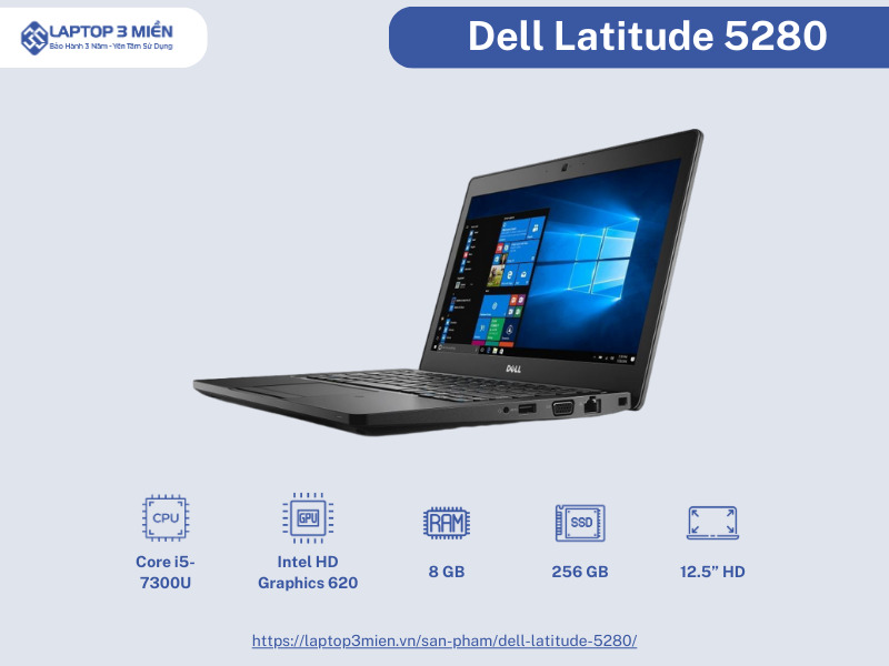 Dell Latitude 5280 là một chiếc laptop đáng tin cậy và linh hoạt, được thiết kế đặc biệt cho nhu cầu công việc và học tập.