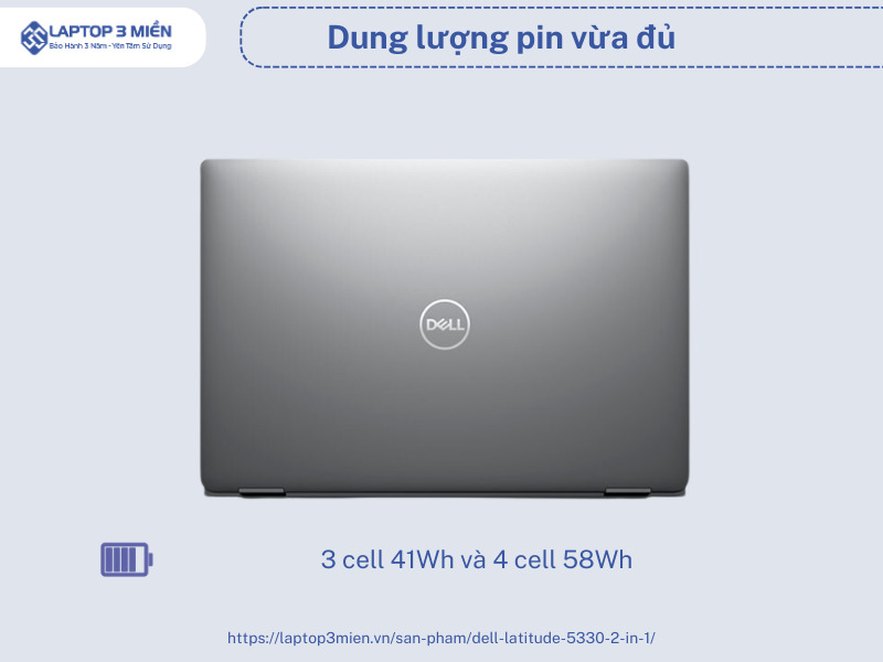Máy tính này có hai tùy chọn pin: 3 cell 41Wh và 4 cell 58Wh, mang lại thời lượng sử dụng lâu dài. Bạn có thể hoàn toàn thoải mái sử dụng cả ngày mà không phải lo lắng về pin.