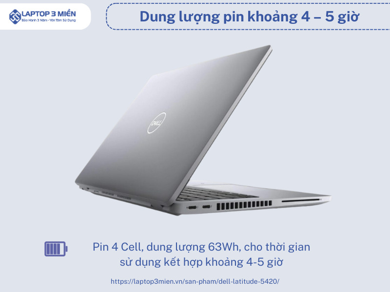Dell Latitude 5420 có dung lượng pin khoảng 4 – 5 giờ