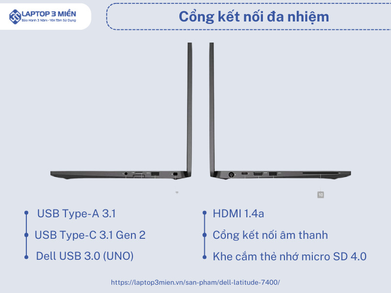Kể từ khi thành lập đến nay, Laptop 3 Miền luôn được đánh giá là một địa chỉ đáng tin cậy và luôn nhận được sự hài lòng từ phía khách hàng mỗi khi sử dụng sản phẩm, dịch vụ. Chúng tôi luôn tự tin mang đến cho khách hàng trải nghiệm tốt nhất với những cam kết sau:- Laptop Dell Latitude 7400 chính hãng, giá cả cạnh tranh trên thị trường