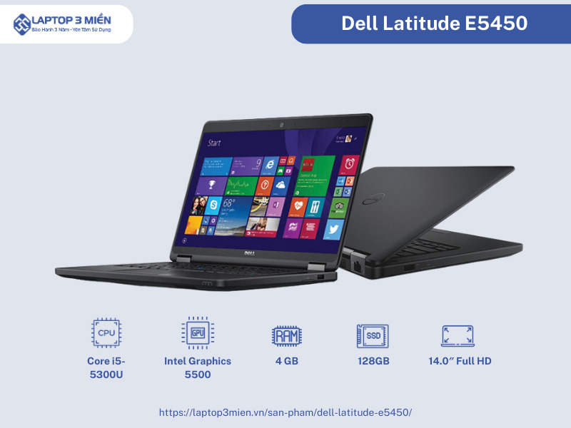 Dell Latitude E5450 là mẫu laptop văn phòng giá rẻ, hiệu suất cao, đảm bảo công việc và giải trí của người dùng. Máy sử dụng dòng chip Intel Core i5-5300U, RAM 4GB, SSD 128GB cùng khả năng bảo mật mạnh mẽ. Hãy cùng Laptop 3 Miền đánh giá chi tiết hơn chiếc laptop Dell Latitude E5450 trong bài viết này!