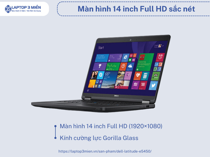Màn hình của Dell 5450 có kích thước 14 inch, độ phân giải Full HD (1920×1080), cho hình ảnh sắc nét và rõ ràng. Màn hình cũng được trang bị lớp kính cường lực Gorilla Glass, giúp chống trầy xước và va đập.