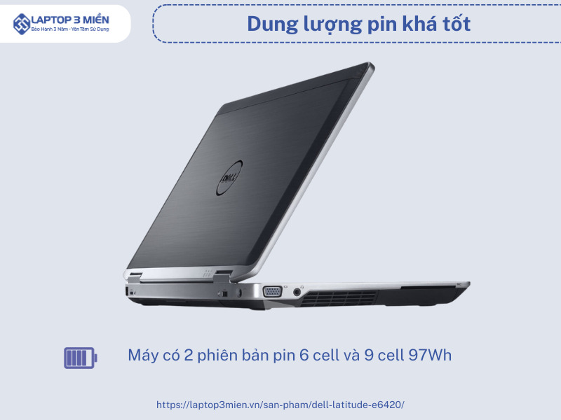 Nếu bạn cần một chiếc laptop có khả năng trữ pin tương đối thì Dell Latitude E6420 là gợi ý đáng để cân nhắc. Máy có 2 phiên bản pin 6 cell và 9 cell 97Wh để người dùng lựa chọn. Một vài bài kiểm tra cho thấy khi sử dụng màn hình với độ sáng 70%, không wifi, máy có thể hoạt động lên đến 8 tiếng.