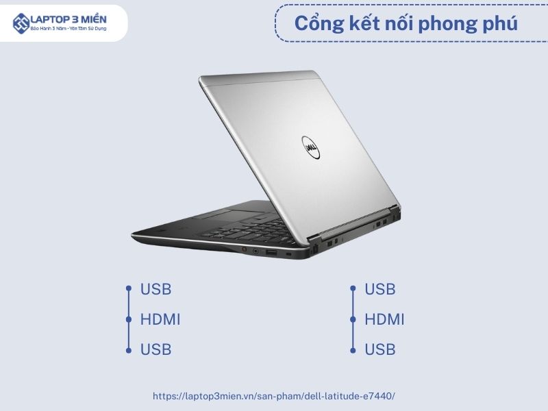 Dell Latitude E7440 được thiết kế để mang lại năng suất cao, vì thế sản phẩm được trang bị hầu như tất cả các công kết nối cần thiết cho công việc văn phòng.