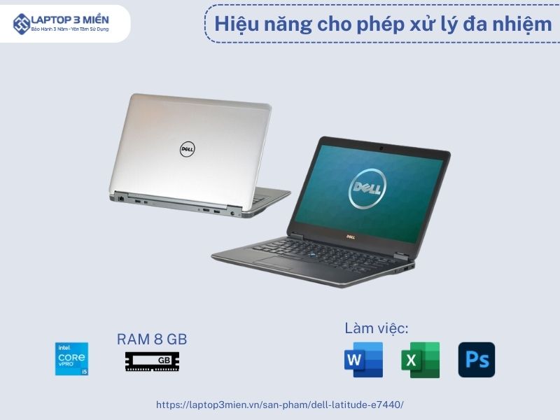 Những thông số này đủ mạnh để Latitude E7440 có thể thực hiện hầu hết mọi tác vụ tính toán văn phòng. Sản phẩm đặc biệt lý tưởng ở khả năng đa nhiệm, mở và chạy các ứng dụng siêu nhanh kể cả khi trình duyệt web đang có đến 20-30 tab khác nhau.