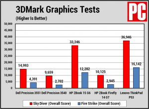 3DMark đo lường cơ đồ họa tương đối bằng cách hiển thị các chuỗi đồ họa 3D phong cách chơi game có độ chi tiết cao. Nhấn mạnh vào các hạt và ánh sáng. Chúng tôi chạy hai bài kiểm tra phụ 3DMark khác nhau, Sky Diver và Fire Strike. Cả hai đều là điểm chuẩn của DirectX 11, nhưng Sky Diver phù hợp hơn với laptop và PC tầm trung. Trong khi Fire Strike đòi hỏi khắt khe hơn và cho phép các PC cao cấp và thiết bị chơi game nâng cao chất lượng của chúng. Quadro P620 không phải là GPU chơi game. Mặc dù nó có thể xử lý một số trò chơi thông thường hoặc giải trí nhẹ sau khi dành một ngày với các ứng dụng ISV.
