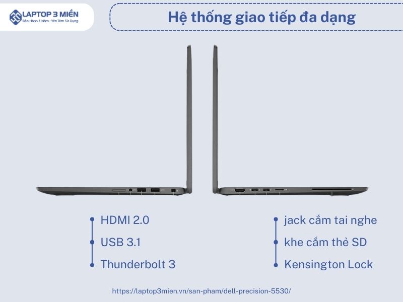 Hệ thống cổng giao tiếp Dell Precision 5530 đa dạng