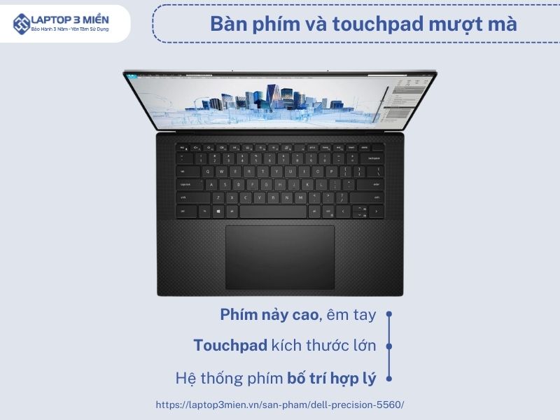 Bàn phím và touchpad Dell Precision 5560 workstation mượt mà
