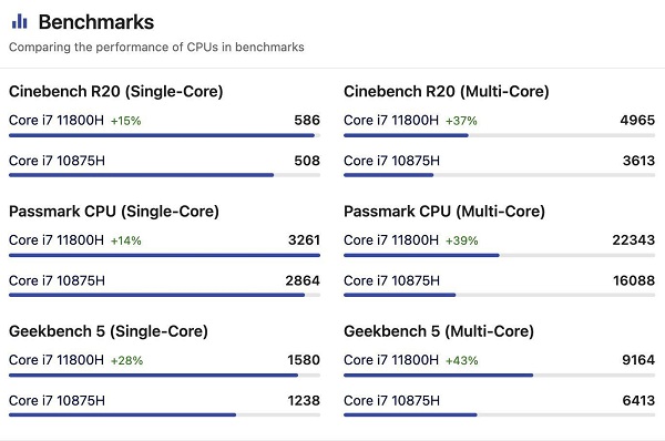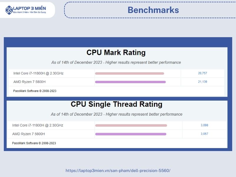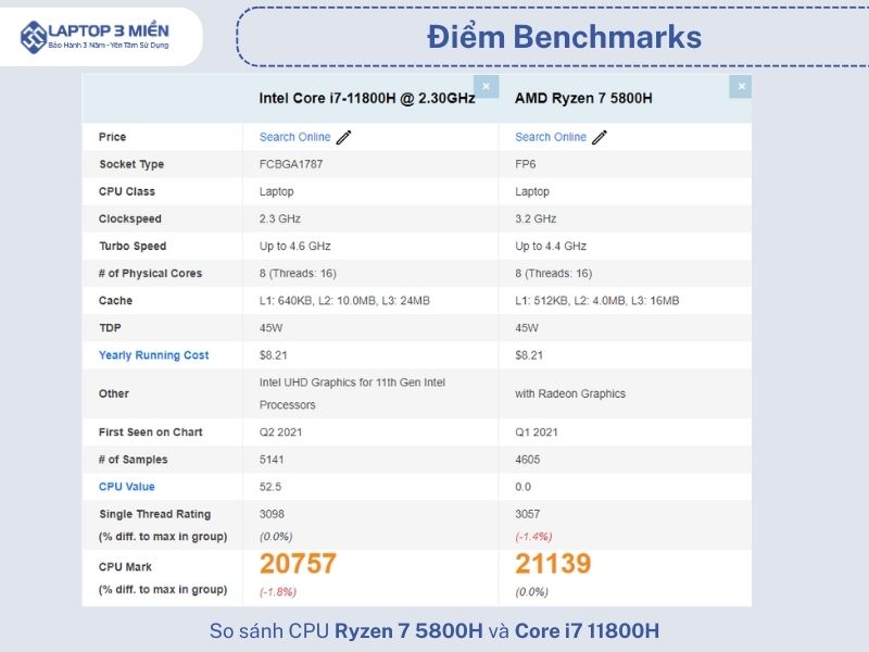 Điểm Benchmarks khi so sánh CPU Ryzen 7 5800H và Core i7 11800H