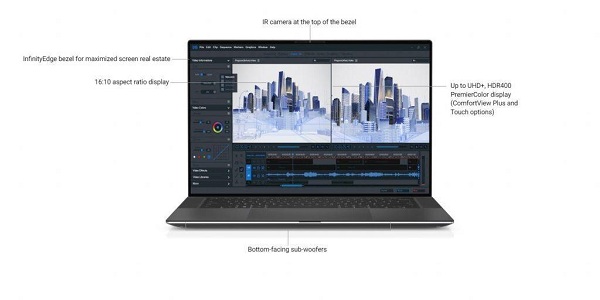 Màn hình 15.6 inch của Dell Precision 5560 workstation với độ phân giải FHD+ và tỷ lệ 16:10 full viền mang lại hình ảnh chân thực và đẹp mắt, có phiên bản độ phân giải 3840 x 2400 pixel. Vì thế, nên chất lượng hình ảnh của Precision 5560 sắc nét và chi tiết hơn từ mọi góc nhìn.