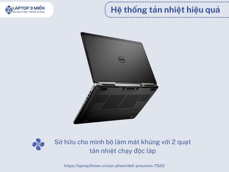 Hệ thống tản nhiệt Dell Precision 7520 hỗ trợ đắc lực cho CPU và GPU hoạt động mượt mà