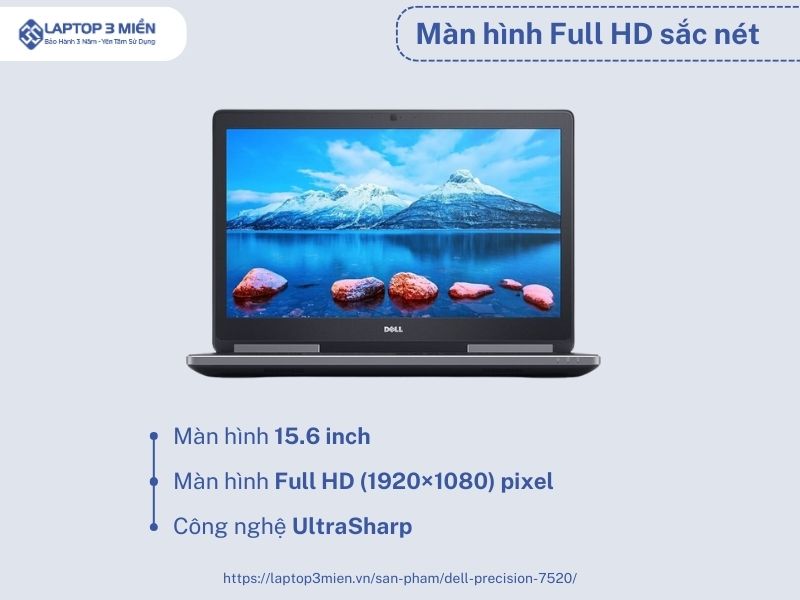 Laptop Dell Precision 7520 có màn hình tới 15.6 inch được trang bị màn hình Full HD (1920×1080) pixel với công nghệ MH IPS Wide View Anti-Glare LED-backlit -300 nits tạo ra những điểm nhìn tuyệt đẹp và có màu sắc rực rỡ cho tất cả 8 triệu điểm ảnh trên màn hình.  Điều đó đã tạo ra 99,9% phổ màu sRGB. Mặt khác, độ chính xác của màu sắc gần đạt được mức độ hoàn hảo với rating Delta-E là 0,09 (0 là điểm hoàn hảo).