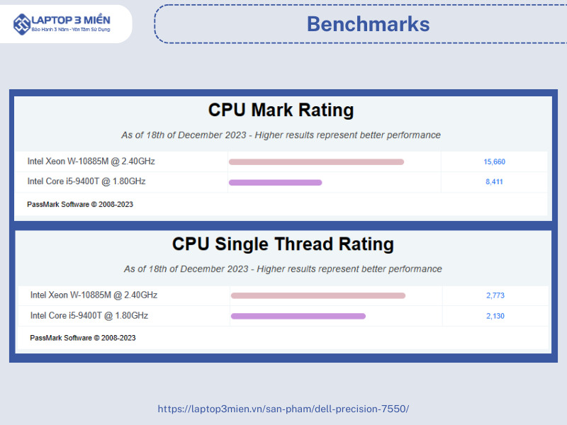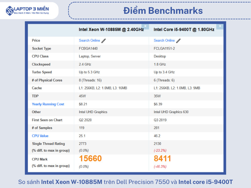 So sánh Intel Xeon W-10885M trên Dell Precision 7550 và Intel core i5-9400T