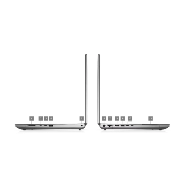 Với sứ mệnh phục vụ cho công việc, laptop Dell Precision 7680 đã được trang bị hệ thống cổng kết nối gần như đầy đủ. Cụ thể, bên cạnh phải của máy sẽ bao gồm lần lượt là đầu đọc SD, jack cắm 3.5mm, USB 3.2 Gen 2 Type-C, USB 3.2 Type-A với PowerShare, Wedge lock slot. Bên cạnh trái sẽ bao gồm lần lượt là 7.4mm power connector, RJ-45 10/100/1000, HDMI 2.1, USB 3.2 Type-A, 2 cổng Thunderbolt 4 / USB 4 và Optional Smart Card Reader.