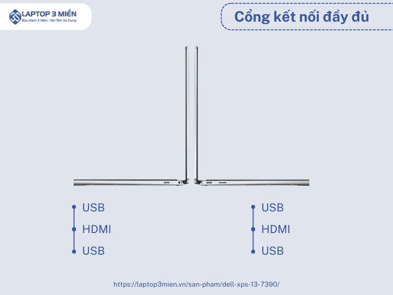 Dell XPS 7390 tiếp tục giữ vững sự linh hoạt trong việc kết nối, tạo điều kiện thuận lợi cho người dùng di động và đa nhiệm. Hệ thống cổng kết nối của máy, mặc dù tương đồng với phiên bản trước đó là XPS 13 9380, nhưng có một số thay đổi đáng chú ý.