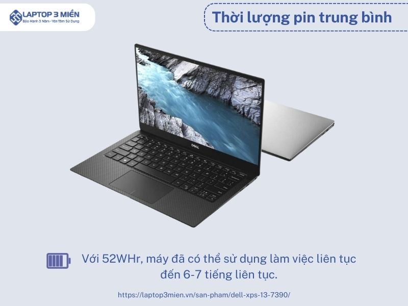 Qua nhiều cuộc thử nghiệm, rất nhiều tuyên bố cho rằng bạn có thể mày mò với Dell XPS 13 7390 khoảng 6 – 7 tiếng khi lướt web qua wifi ở độ sáng 150 nits. Nhưng tất nhiên, nếu bạn thay đổi mấy cái như độ phân giải lên 4K hay tăng độ sáng màn hình, thì thời lượng pin cũng sẽ thay đổi theo.