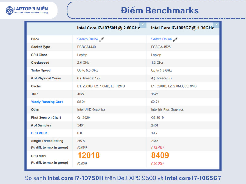 So sánh Intel core i7-10750H trên Dell XPS 9500 và Intel core i7-1065G7