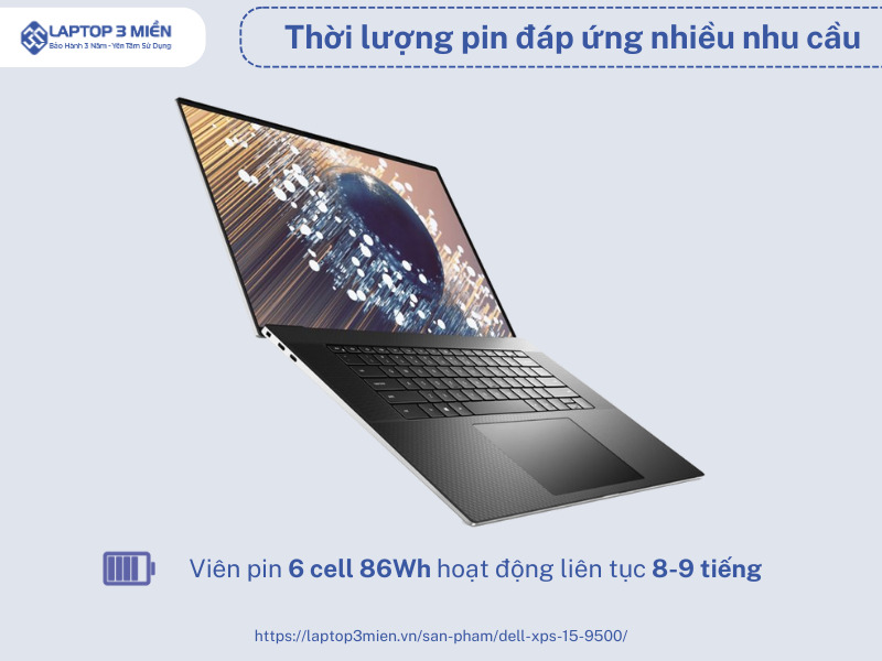 Thời lượng pin Dell XPS 15 9500 khá tốt