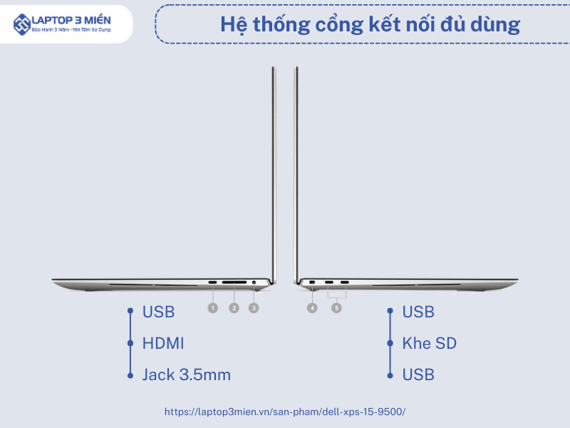 Dell XPS 15 9500 trang bị khá đầy đủ cổng kết nối