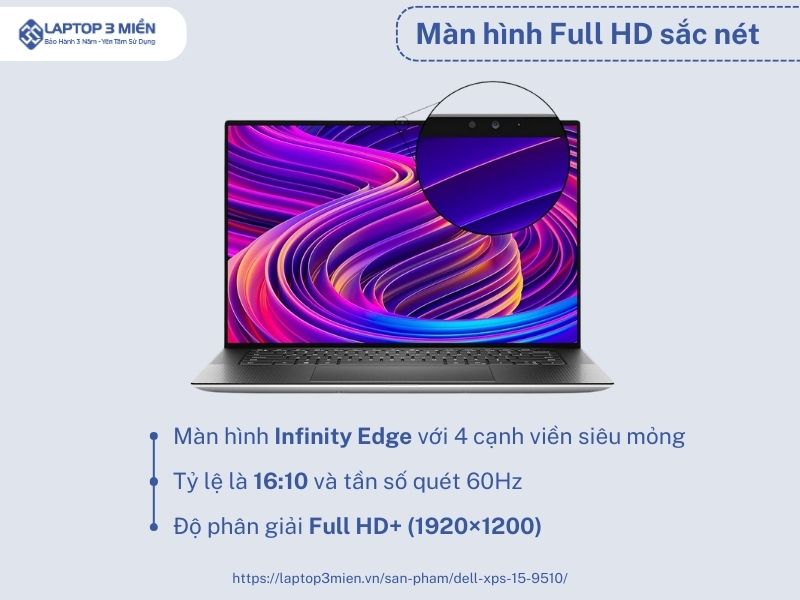 Laptop Dell XPS 15 9510 sở hữu cho mình một màn hình Infinity Edge với 4 cạnh viền siêu mỏng mang đến góc nhìn tối ưu nhất cho người sử dụng. Đồng thời kích thước màn hình 15.6 inch với độ phân giải Full HD+ (1920×1200) sẽ giúp người dùng có được trải nghiệm được với các hình ảnh chân thực, sống động đến từng chi tiết.