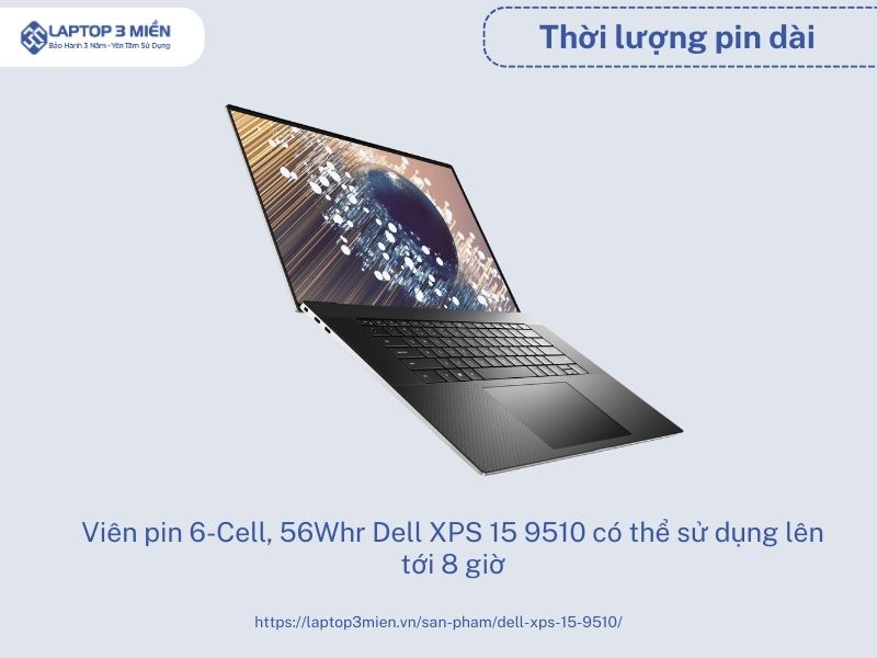 Laptop Dell Xps 9510 2021 cho phép thời lượng sử dụng suốt cả ngày dài chỉ với một lần sạc duy nhất. Với dung lượng pin là 56Whr, thì bạn có thể sử dụng 8 tiếng đồng hồ khi xử lý các công việc không quá phức tạp. Dell XPS 9510 2021 được đánh giá là một trong những dòng laptop dẫn đầu thời đại và xứng đáng thay thế luôn cả ultrabook mà bất cứ ai cũng sẽ mê mẩn ngay lần đầu tiếp xúc.
