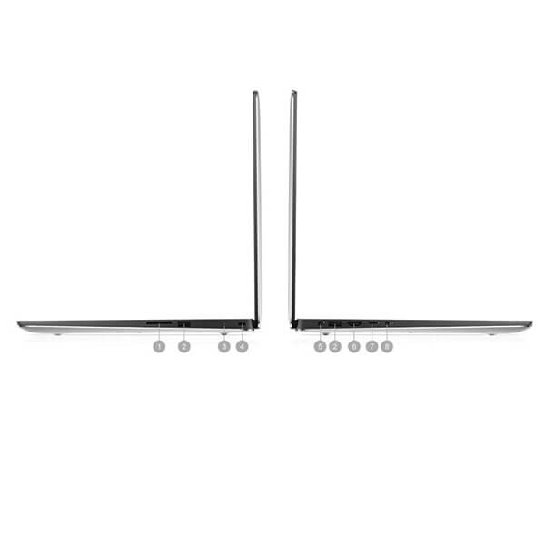 - Các cổng kết nối cần thiết: Mặc dù XPS 9550 có thiết kế mỏng nhẹ, nhưng Dell vẫn đảm bảo tích hợp đầy đủ các cổng kết nối cần thiết. Bên trái của máy có cổng HDMI, cổng USB 3.0, cổng Thunderbolt 3, cổng cắm mic và cổng cắm tai nghe. Bên phải của máy có khe khóa Kensington, đầu đọc thẻ nhớ SD và cổng cắm USB 3.0. Ở cạnh trái, bạn sẽ tìm thấy jack nguồn, cổng USB 3.0, cổng HDMI và cổng USB 3.0 Loại C. Cạnh phải có đầu đọc thẻ SD, cổng USB 3.0 và khóa Kensington.