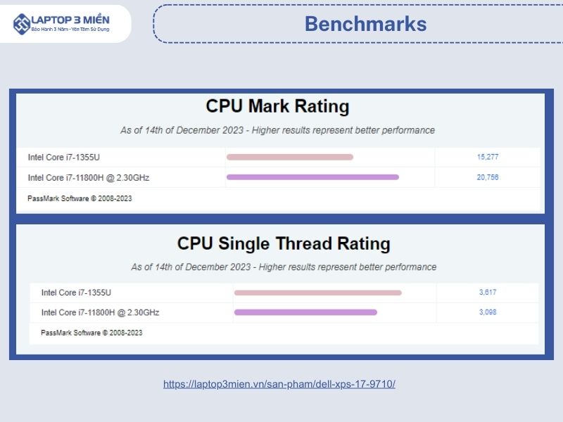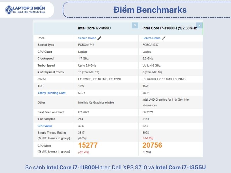 So sánh Intel Core i7-11800H trên Dell XPS 9710 và Intel Core i7-1355U