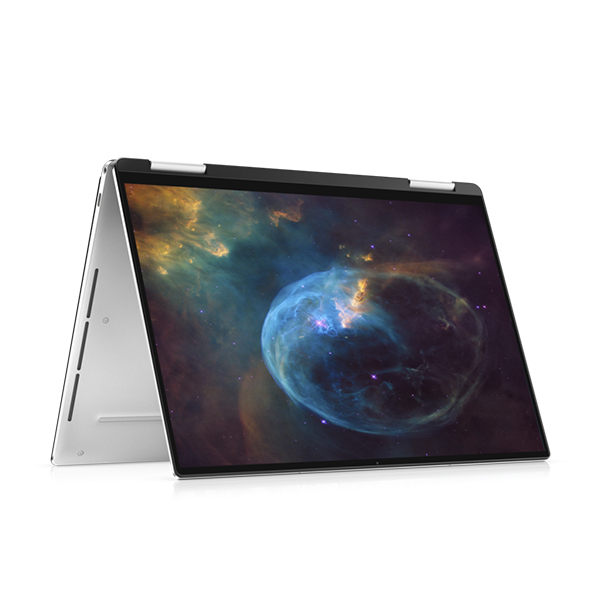Bản cập nhật XPS 13 2-in-1 mới nhất của Dell năm ngoái với tông màu bạc và đen. Khiến bề ngoài nó trông khá chung chung nhưng bên trong cao cấp hơn nhiều. Mặc dù vỏ bạc có lớp hoàn thiện hơi lấp lánh tạo cho nó một số kết cấu. Nhưng bản lề đáng chú ý của nó có nghĩa là nó không quá bóng bẩy gây ấn tượng ban đầu. Nghĩa là cho đến khi bạn mở nó ra.