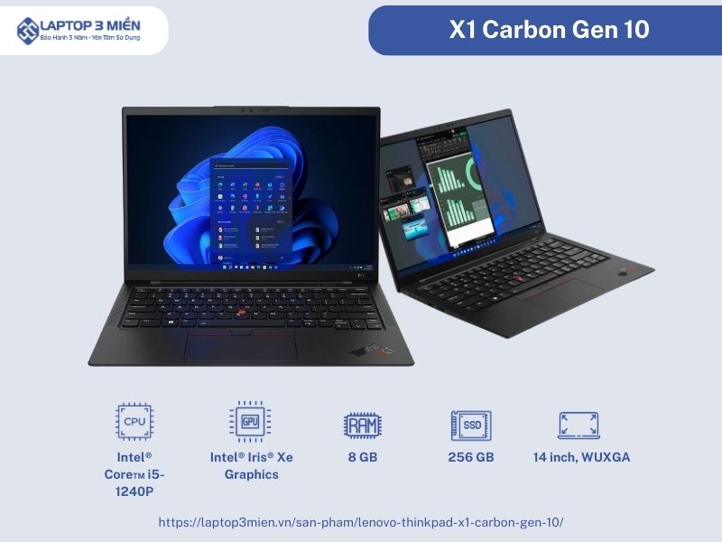 Lenovo ThinkPad X1 Carbon Gen 10 2022 là một chiếc máy tính xách tay doanh nhân cao cấp được ra mắt vào năm 2022. Máy được trang bị bộ vi xử lý Intel Core thế hệ thứ 12 mới nhất, màn hình 14 inch độ phân giải cao và một loạt các tính năng bảo mật và hiệu suất cao.