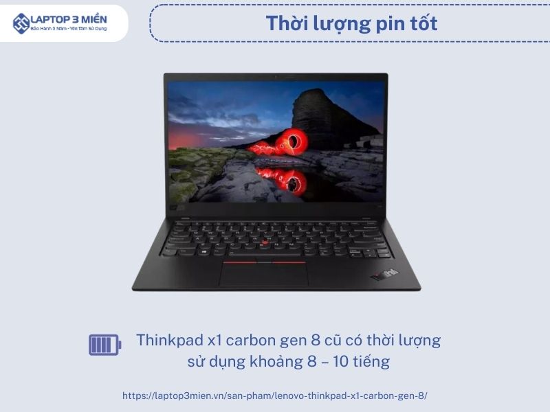 Thinkpad x1 carbon gen 8 cũ có thời lượng pin khoảng 8 – 10 tiếng